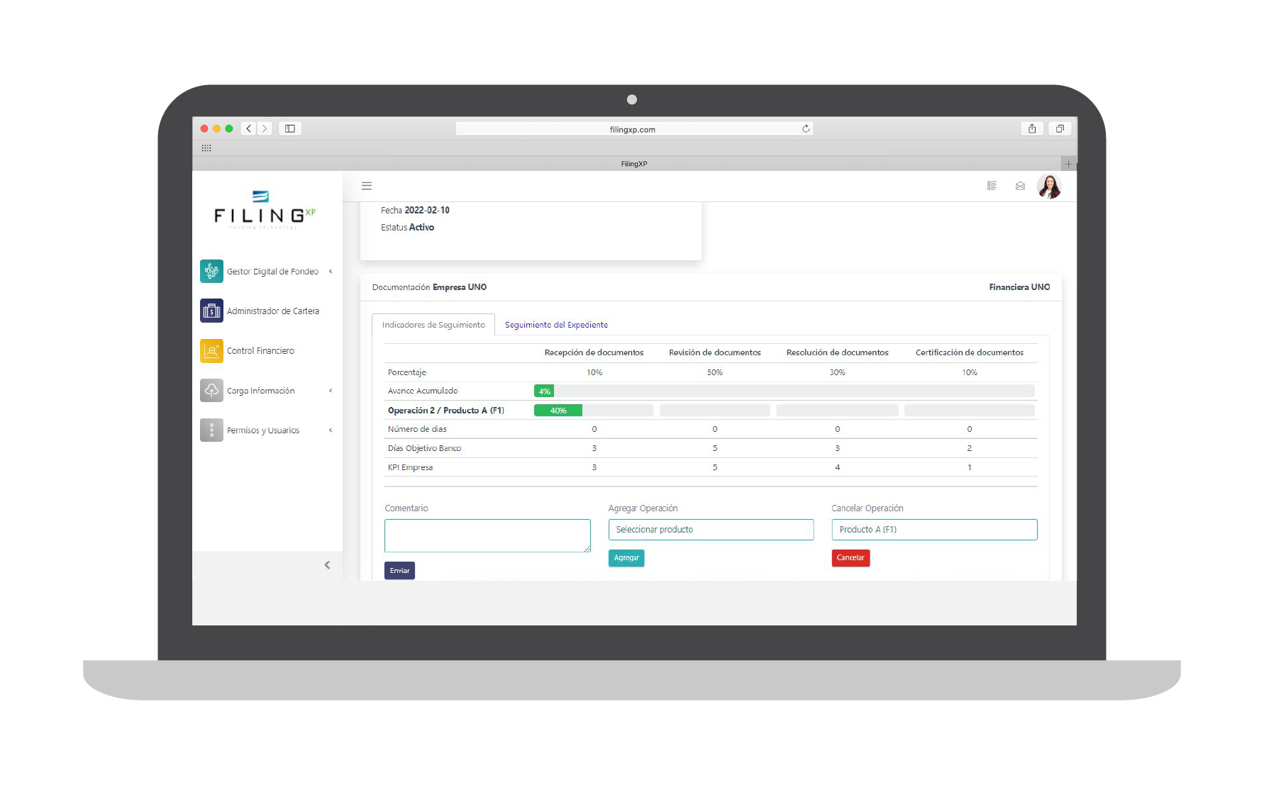 Por medio de esta herramienta, es posible monitorear los covenants de los fondeos.